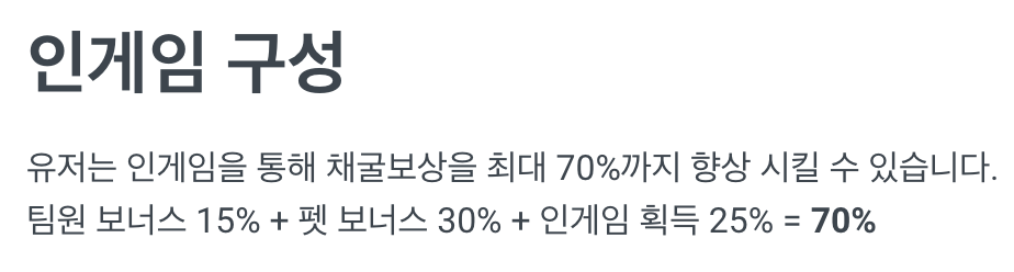 채굴되는 양을 늘리기 위해서는 팀을 구성하거나, nft 펫을 이용하거나, 인게임 상의 보상을 이용해야하며,