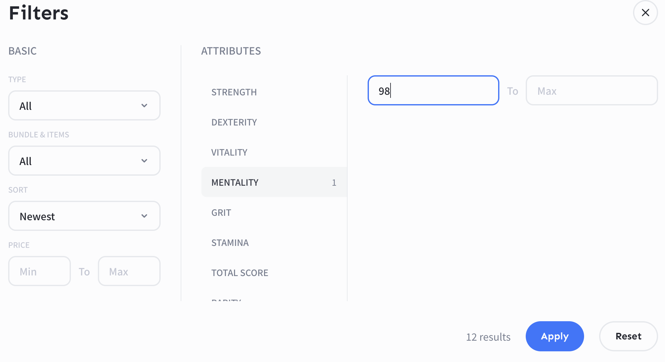 주스탯 98 이상의 경우 매우 높은 가격에 거래되는 것을 볼 수 있습니다.
