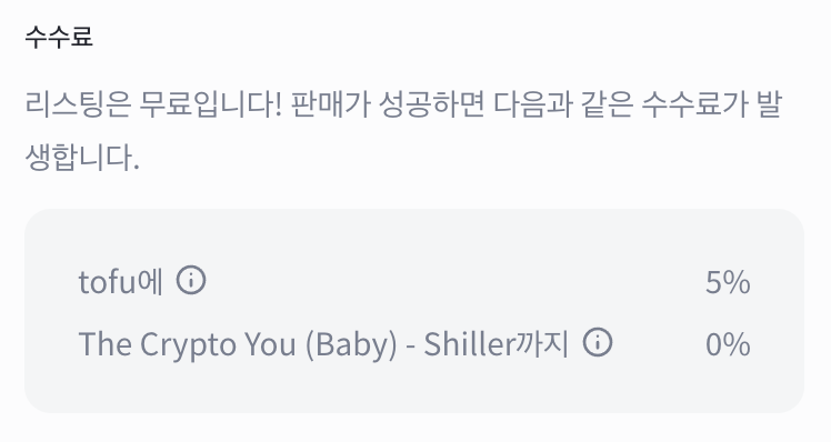 판매 리스트에 올릴 때는 서명만 하고 수수료가 따로 발생되지는 않습니다.