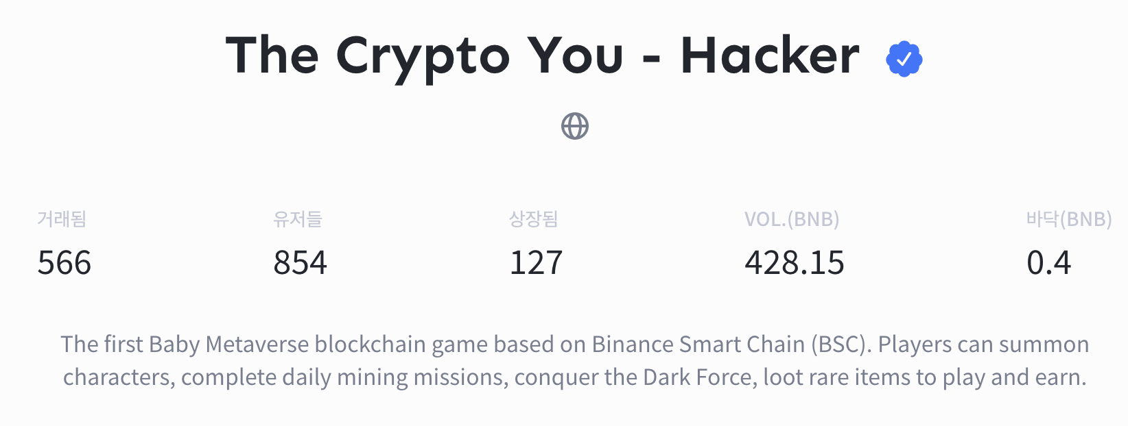 | [P2E] Cryptoyou(크립토유) 게임 (0) | 2021.12.06 |